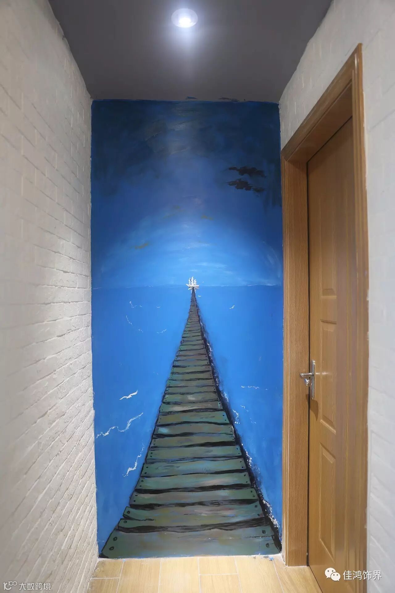 ▲伊道白色的墙壁在业主的手笔下绘成了一条通向海底的隧道,遥远得望不见尽头,仿佛置身于海洋之中。