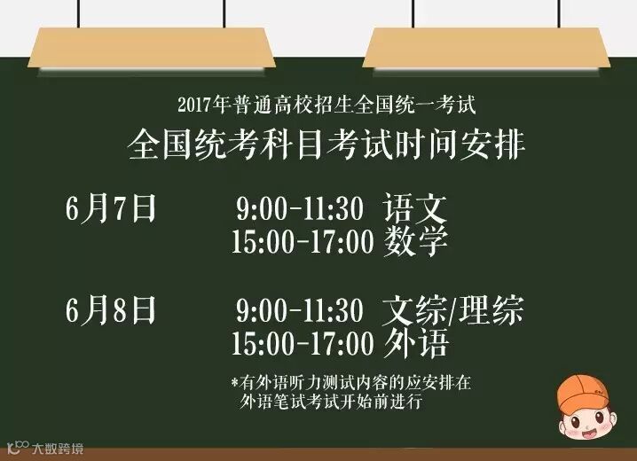 特别注意:教育部规定,考生一定要在开考前20分钟开始进入教室,正式考试开始15分钟后禁止迟到考生进入教室。外语科目因有听力考试,考前15分钟就不能入场了。考试当天出行一定要机灵点,情况不妙赶紧求助。