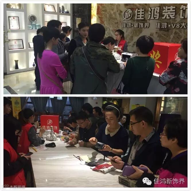火爆地点不仅仅是在客户洽谈区和主材展示区,我们的前台交定区也是在排队刷卡呢!真的很感谢业主朋友们对佳鸿的信任与认可,全体佳鸿人定当不辱使命!!