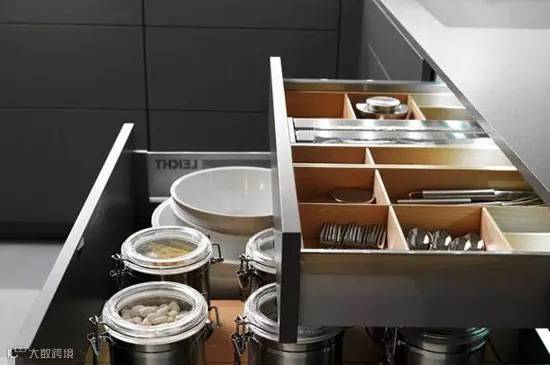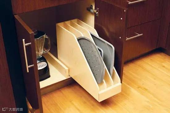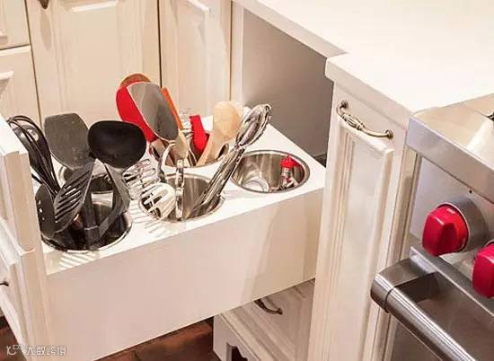 9、抽屉式拉篮,分成大大小小的格子,分类摆放叉子勺子之类餐具。