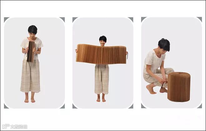 推荐理由:这款凳子主要材料是牛皮纸,环保自然,而且这款凳子是便携式的,需要拉开后围成圈使用,像拉手风琴一样优雅,平常不用的时候可以收起来。虽然是用牛皮纸做地,却可以承受300kg的重量,所以一个人的重量还是可以承受的。
