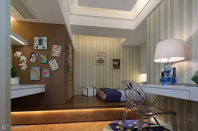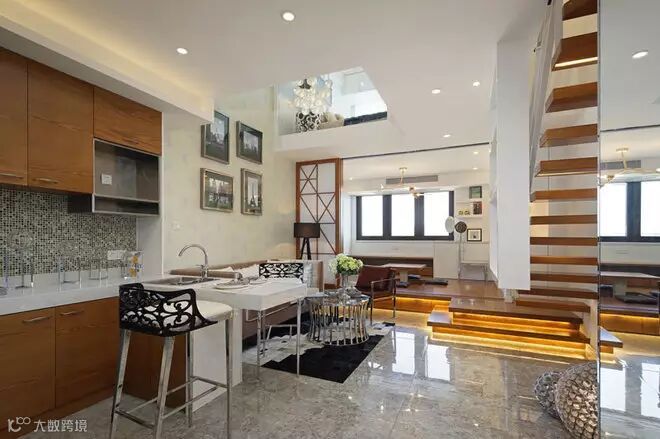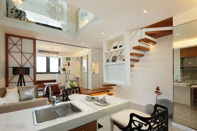 由于室内空间受到大小的限制,设计师想把该房打造成一个三居两厅两卫的生活起居空间。设计凭借高度优势,对空间进行块面的切割。