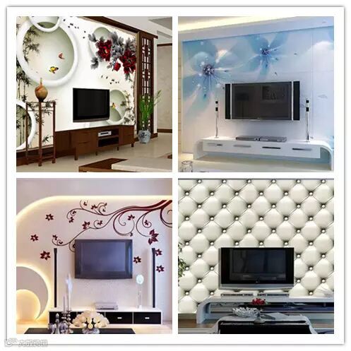 注意:这里是反面教材!3D瓷砖贴面的背景墙、整幅2D简约线条图、仿真花色图、花色贴纸图,在背景墙都属于浪费。
