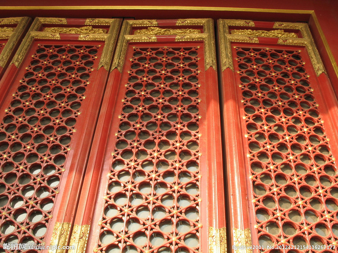 所谓“花窗”,往往是指隔扇门的“格心”部分。故宫可以说是隔扇门最精彩之所在。格心的样式灵活多变,错综复杂的图案,无不蕴含着丰富的吉祥寓意。下面,我们就逐一来欣赏。