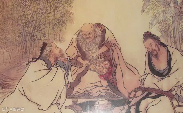 ,品茶论道,怡然自得。