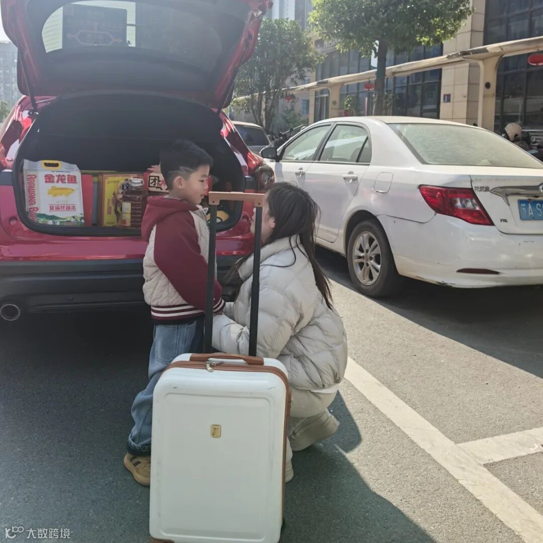 小小的手掌紧紧攥着行李拉杆,