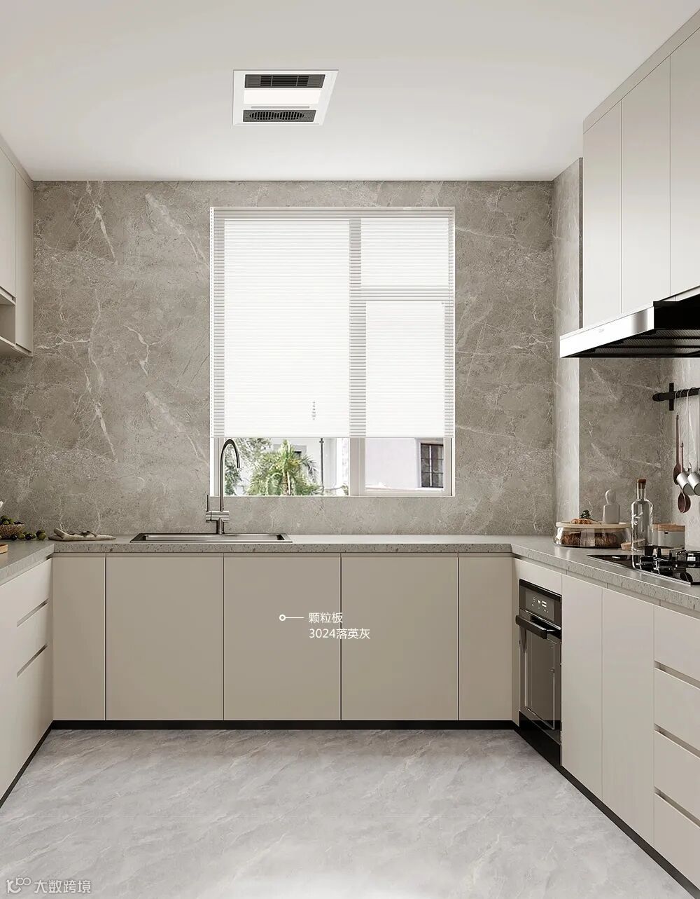 幸福莫过于厨房有烟火。客餐厅以开放式呈现,在视觉上扩大了整体的空间感,落英灰浅色搭配的橱柜在平静的环境下营造时尚、干净的氛围。