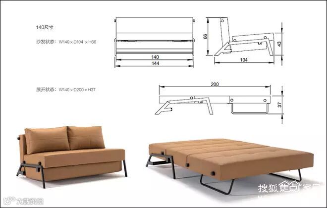 产品尺寸:沙发W140×D104×H66cm; 床W140×D200×H37cm
