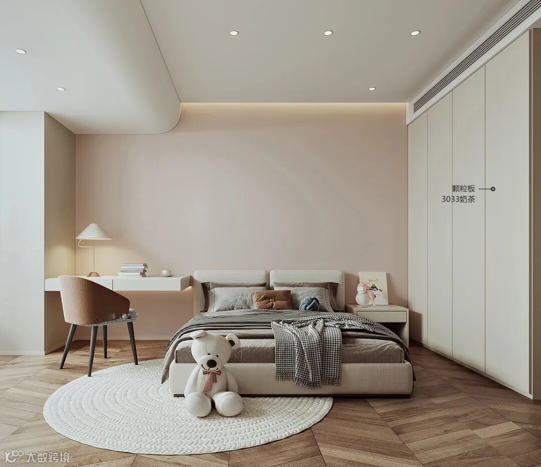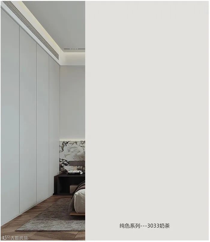 3033奶茶纯色饰面板,奶茶裸色温润如玉,内敛温柔,清风晓月,十分百搭,不争不抢却灼灼其华。这样的空间好像手捧一杯浓香的热奶茶,满满都是温暖和安心,营造温馨舒适的氛围。