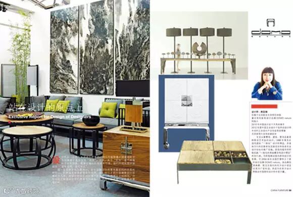 这样的设计,可以让箱几不再局限于“床头”,而是可以作为边几、茶几、甚至是电视柜而存在。DOMO NATURE的创意搭配方法,是上面放一个台灯,以组合方式出现,成为客厅或者是床头最为独特的一角。如上图所示,DOMO NATURE创始人兼主设计师赖亚楠接受杂志采访,这款箱几组合也在其中作为重要展示。