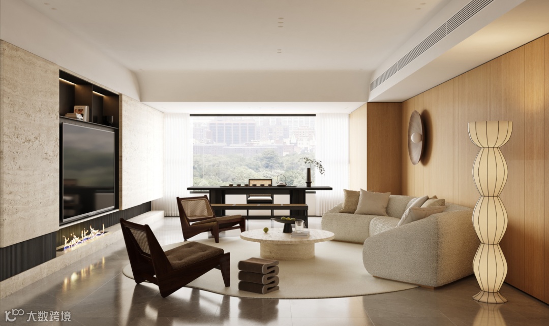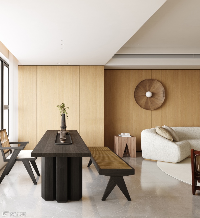 脉络清晰的直木纹理,散发着大自然的韵味,撞上生机勃勃的绿植,让天然元素得以尽情铺展,完美诠释当下流行的环保、轻奢、简约的家居新风尚。