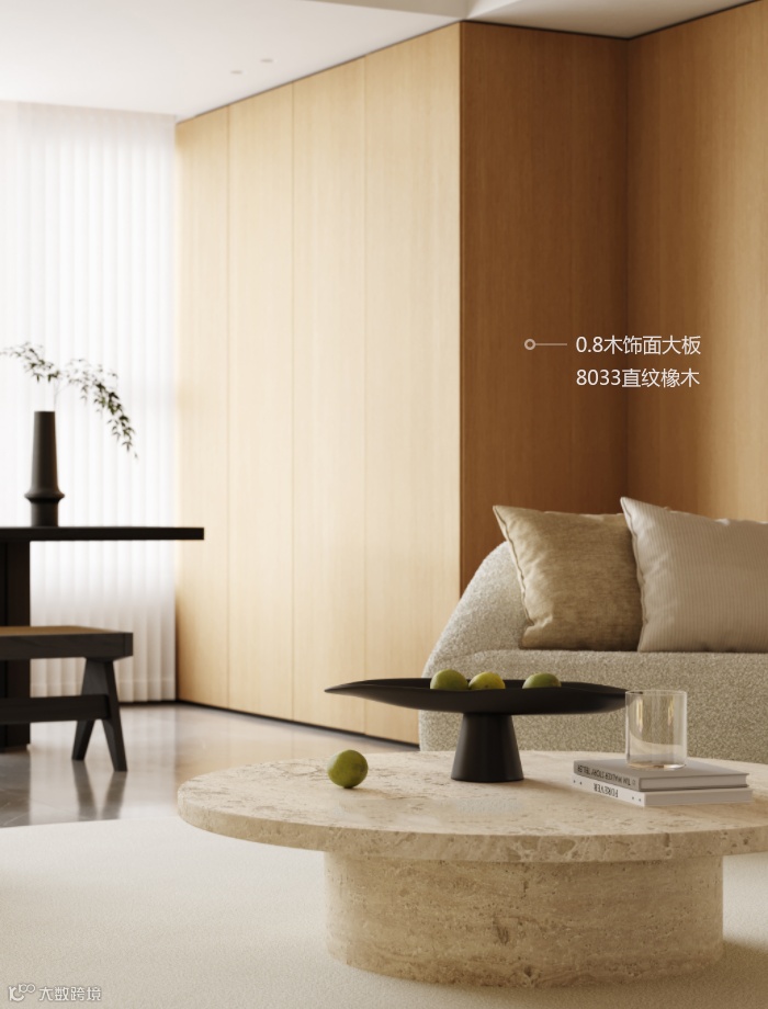 橡木直纹细腻还原天然色泽,与时尚高级的奶咖色邂逅,天然质感,自带柔光,华丽而不张扬,诠释极简风格的干净利落,奢享简约极致的美好生活。