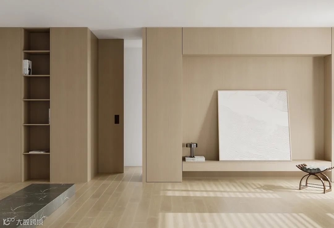 大面积使用梧桐木纹木饰面,温柔淡雅又凸显质感,整体拥有通透、明亮的视觉感受,体现出了自由和灵动。整个空间也强调出了轻盈感,打造了一个清心温润的小家,自然宁静的空间氛围,给你一个宅家的好理由。