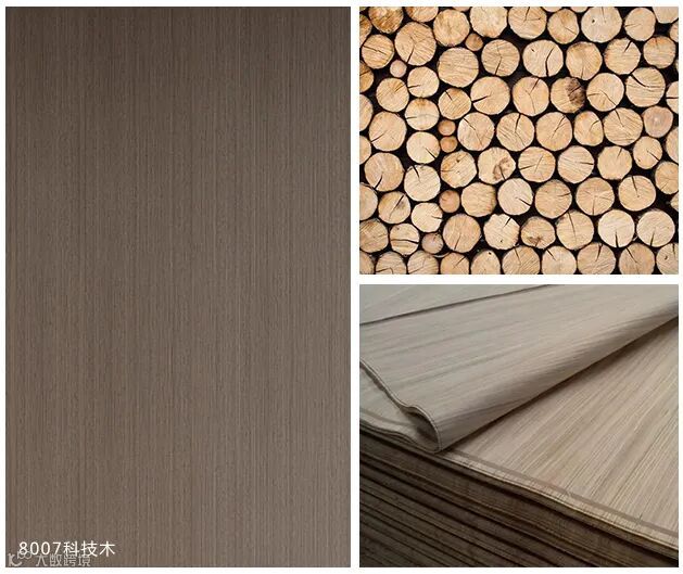 科技木皮(人造木皮)是以普通木材(速生材)为原料,利用仿生学原理,通过对普通木材、速生材进行各种改性物化处理生产的一种性能更加优越的全木质的新型装饰材料,是天然木材的“升级版”。其选用原木为原材料,经过一系列的电脑图案设计、染色、再构造、除虫处理、高温高压之后生成为科技木皮。处理之后的科技木皮,表面光滑,色彩甚为丰富。