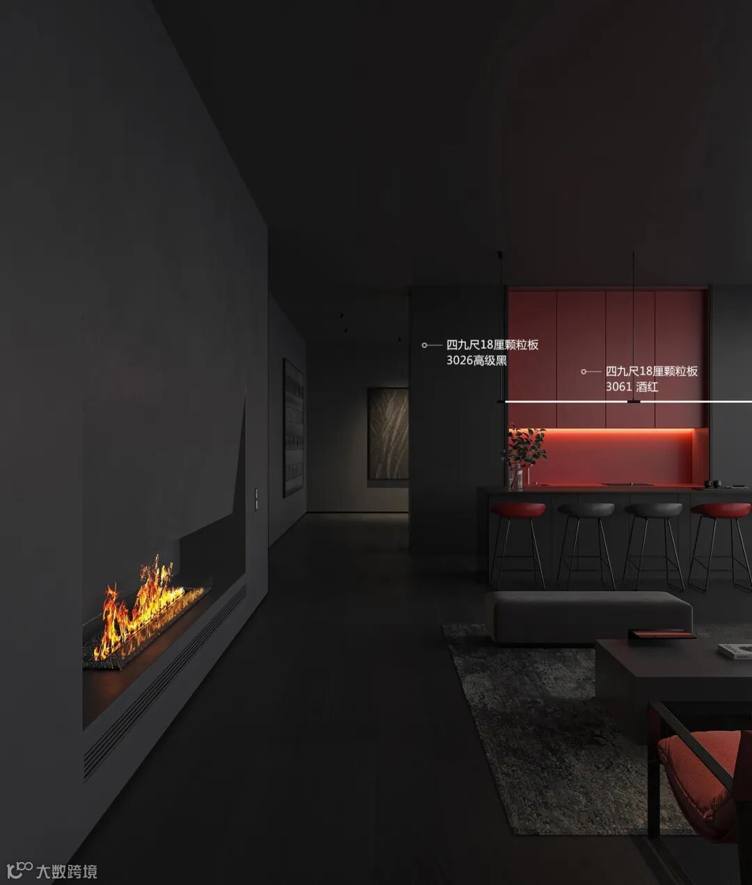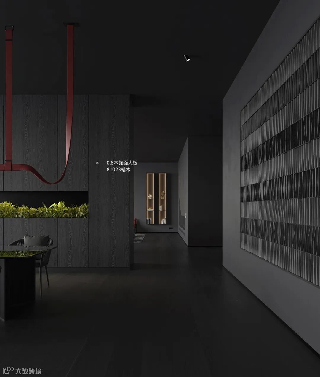 3026高级黑饰面板可以很好的搭配其他的颜色,通过各种途径来巧妙地增加家里的层次与生活感,有一种黑色诗歌般的优雅。