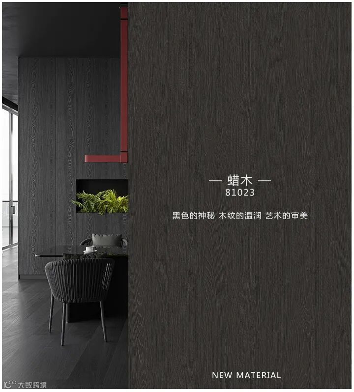 黑色是时尚界经久不衰的经典色彩,它神秘、稳重、冷峻又百搭,现代的黑色家居有着强烈的个人风格表现力,家居设计中把黑色用得好,不仅有个性、酷帅,更能凸显出高级感。黑色木纹系列——81023蜡木,融入熔岩般的冷峻,同时又有自然木纹板的自然气息,让板材透出与众不同的触感与观感。