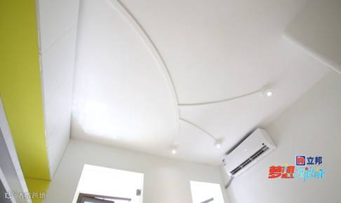 客厅里可旋转的电视和餐厅的桌椅变化,为一家人吃饭和休闲提供了极大的便利。天花板铺设的线路,由于预制板不能开槽,线路被设计成了枝状造型,显得生机浪漫。