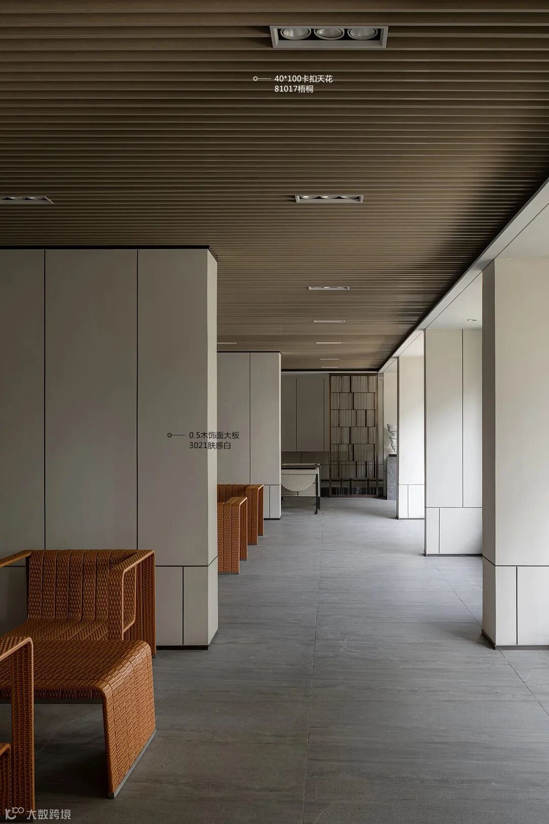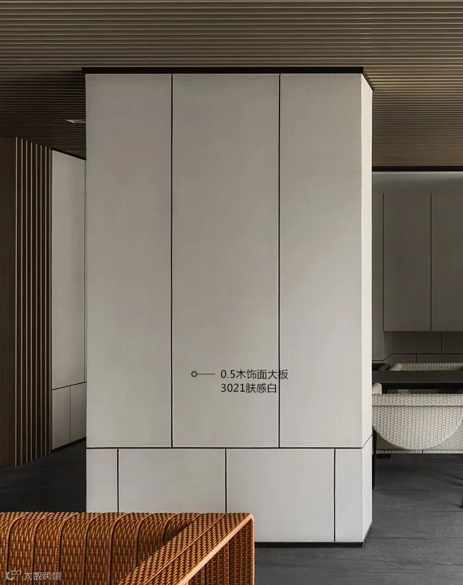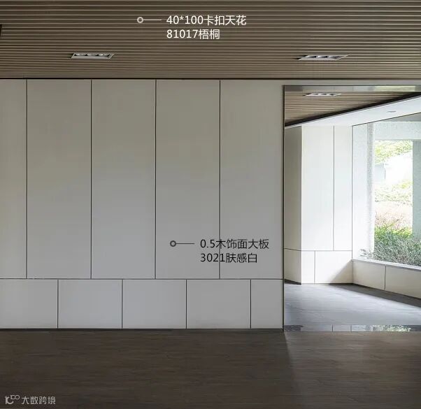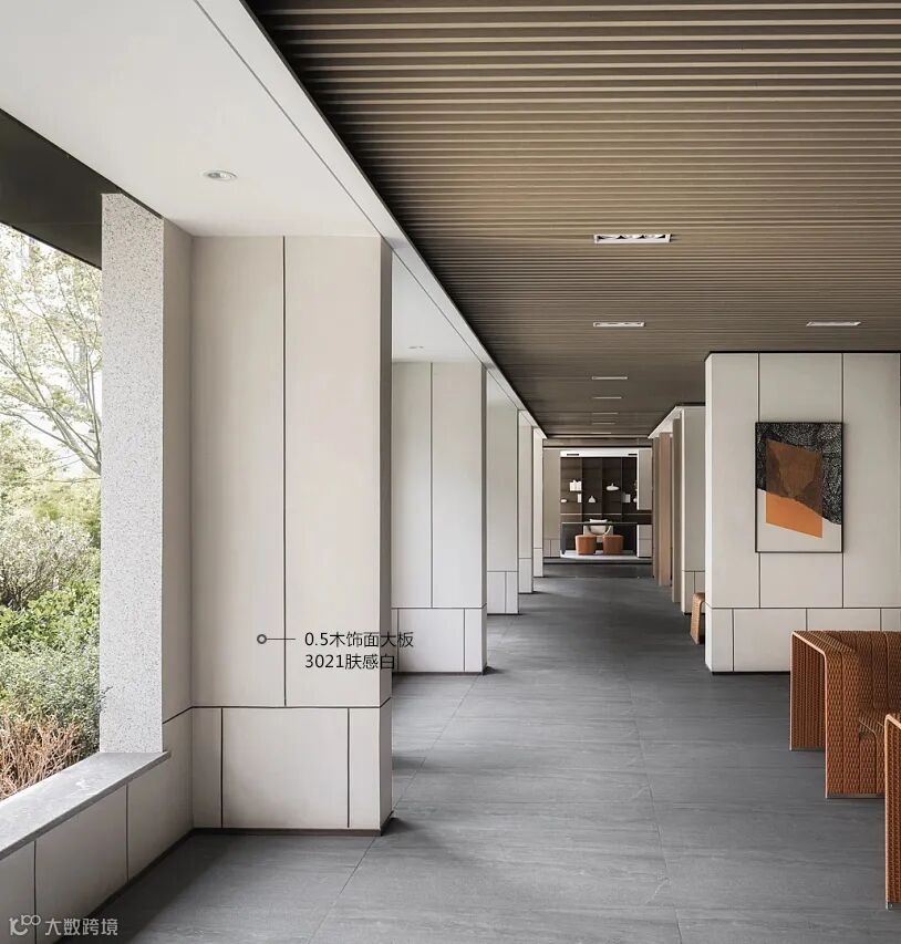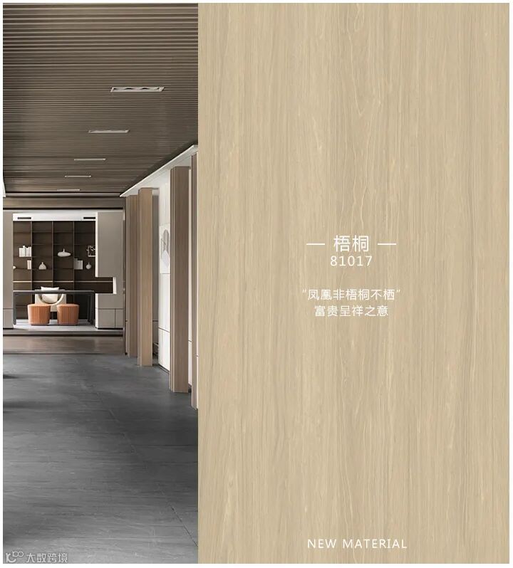 架空层作为一个室内与室外的过渡空间就成为了一个绝佳的场所,让人们在风雨天也可以下楼进行社交休闲。随着科技的进步、建筑材料的发展,架空层元素、设计手法,材料形式也越来越丰富起来。深色的31007金棕榈木饰面色调沉稳,更显大气;81017梧桐木饰面显贵族气质。