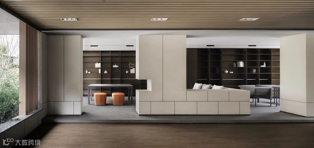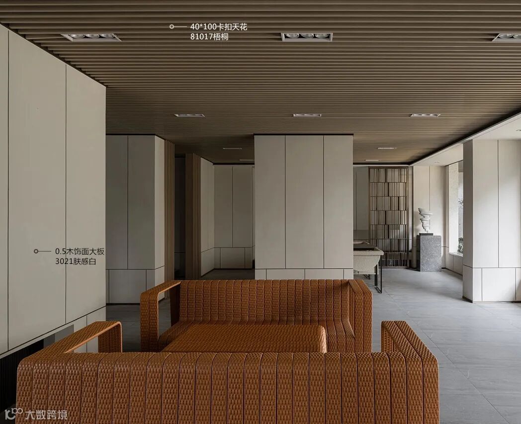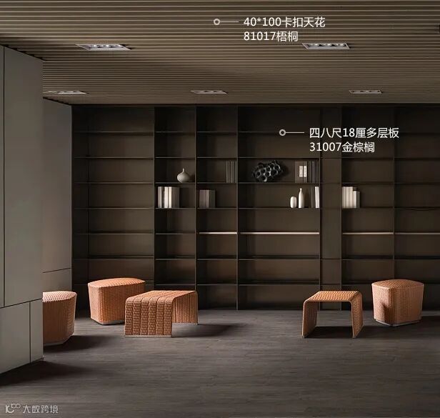81017梧桐卡扣天花+31007金棕榈书架,用作休息、安静的空间。累了的时候,可以在这小憩一会,畅游书海,看看眼前的美景,呼吸新鲜空气。