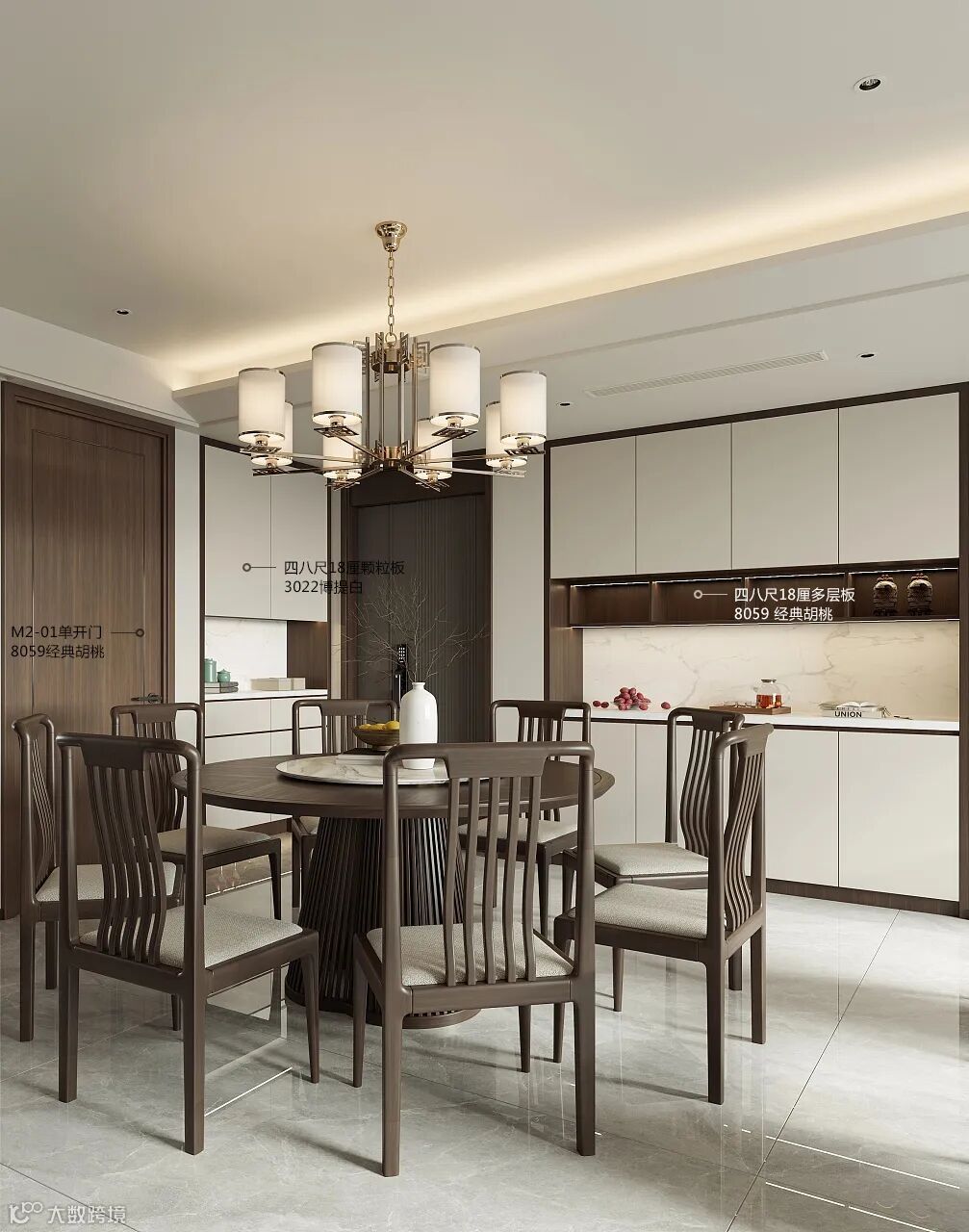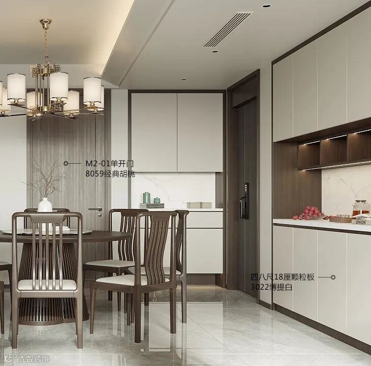 走进新中式的家,你会不自觉的放慢脚步、放松身心,门外的喧嚣与躁动与你再无关系。8059经典胡桃木深棕色的浓郁稳重,搭配3022博提白更具现代气息。简约是都市人内心最深处的期盼,每个人的生活都应呈现最美好的一面,风尘俱静、禅味悠长。这里有宁静致远的格局,有清风自来的淡泊,有返璞归真的绝俗,有身心寂静的归宿。