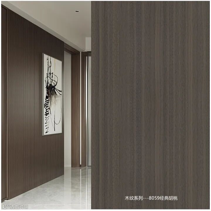 木材之美,在于纹路幻化。木头上疏密有致的纹理,强弱不同的颜色,就是它们独一无二的“指纹”。木纹,是自然赋予树木的一种生命特征,是岁月最好的记忆。8059经典胡桃流畅的直线纹更显纯粹精华,温润如玉,流露出不同凡响的美感,犹如深具性情的木中绅士,集“古朴+时尚、简洁+精湛”于一体。