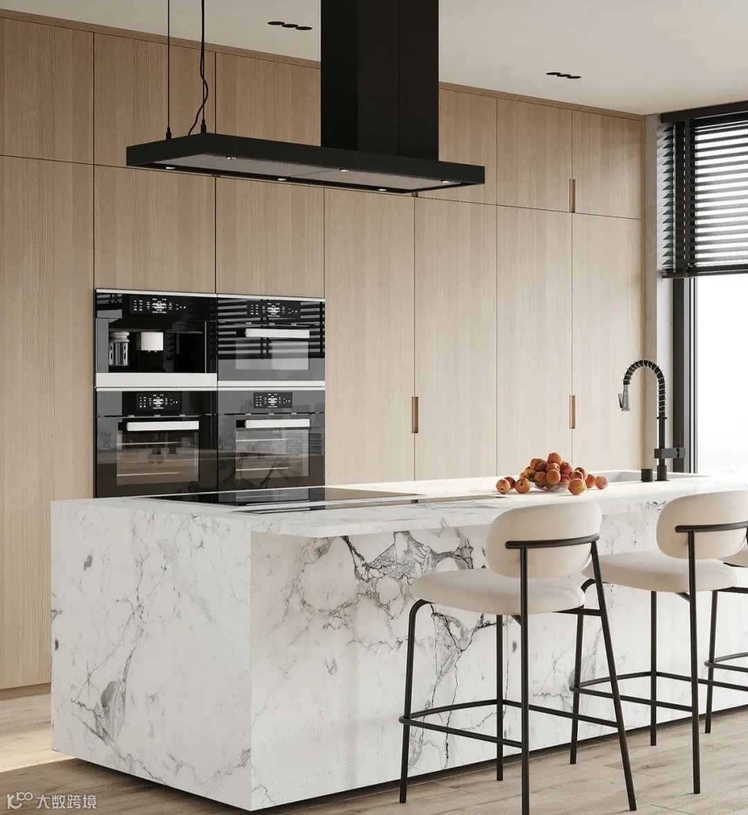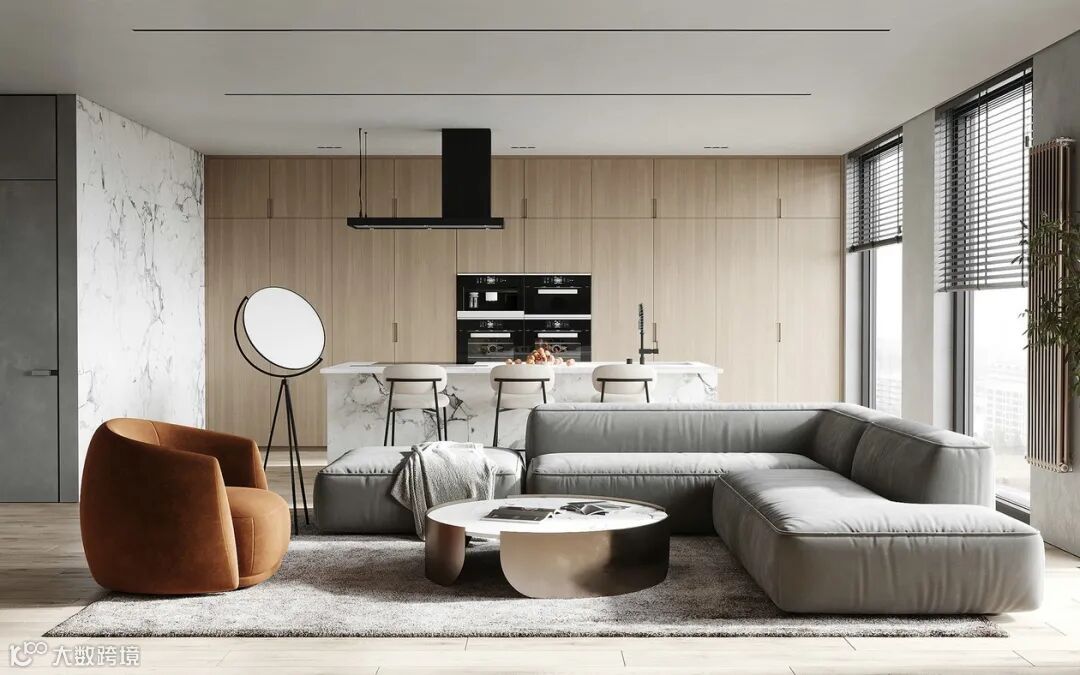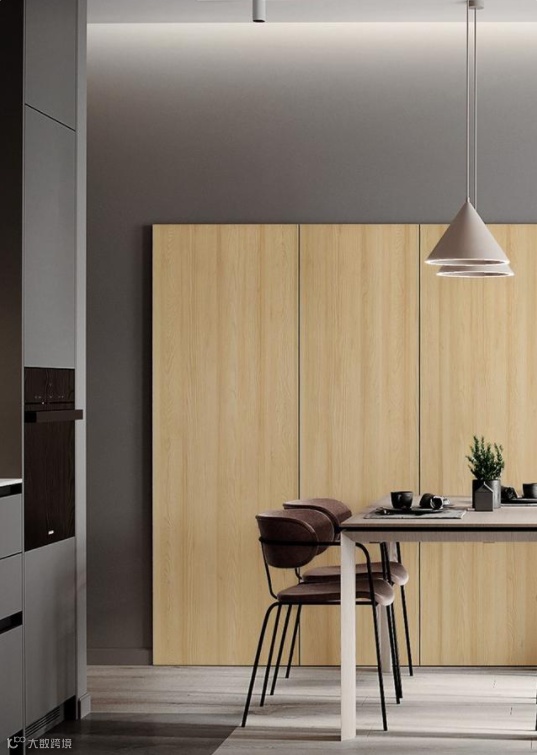 肤感仿岩板与8066经典橡木的搭配,体现出的独特纹理和质感,使空间更加纯粹与自然,更贴近生活。透过百叶窗那迷人的光影散落于每个角落,无需多余的内饰,同样呈现出真实的生活原貌与本质。