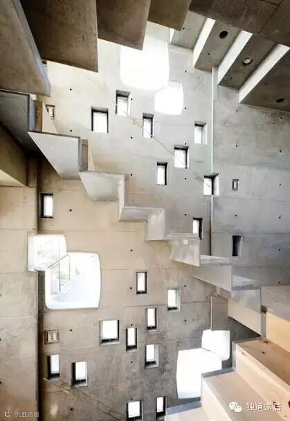 ▲这样的楼梯,上楼就仿佛穿越时空~~ 案例中运用了清水混凝土这种混凝土材料中最高级的表达形式来作为主要材料,体现的是“素面朝天”的品位。