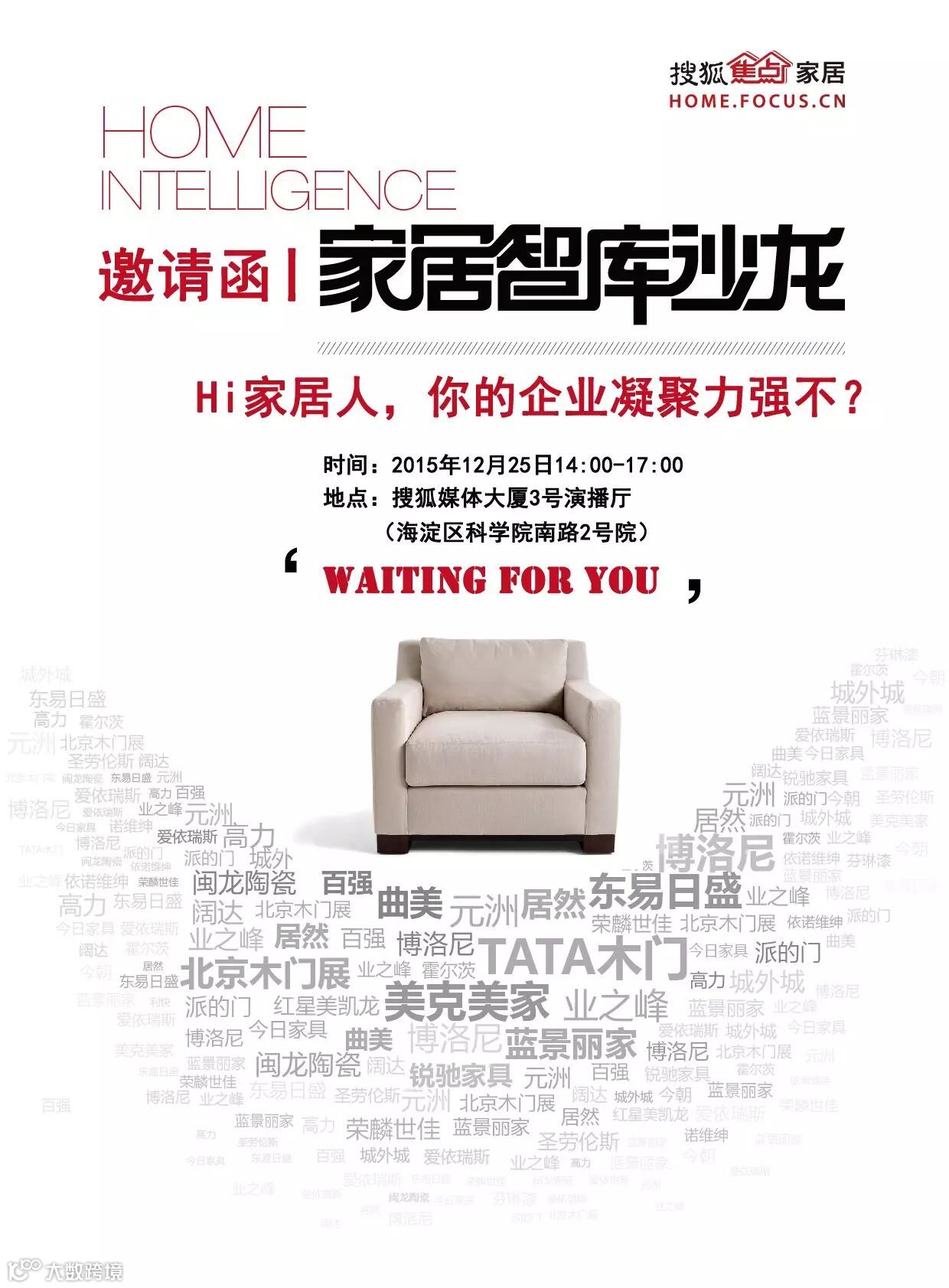 2015年年末,《家居智库沙龙》将为大家奉上思考团队建设的一场沙龙,让大家在年末再聚心力,共同奔向梦想中的2016。