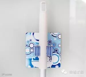 是不是很不同?这个是来自台湾的硅胶夹贴,你问我能夹什么?只要是圆柱体的都可以夹住。比如拖把这种超级占空间的东西:
