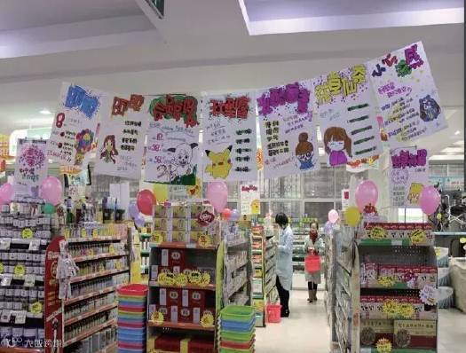 3.礼品专区陈列:礼品专区务求面积大;上方悬挂喜庆装饰;前柜玻璃面上做实物陈列;爆炸花及装饰物美化;做主题词或者喜庆节日美化。