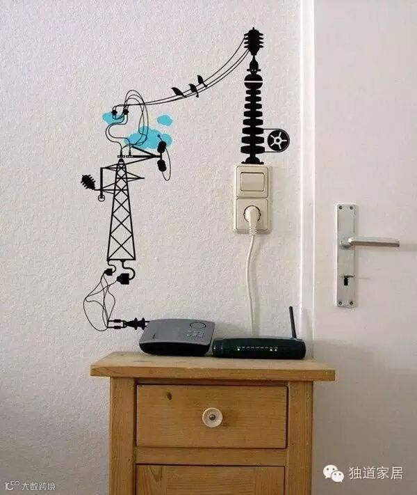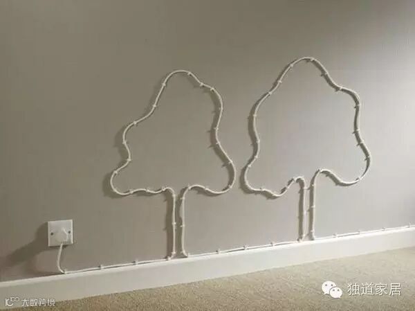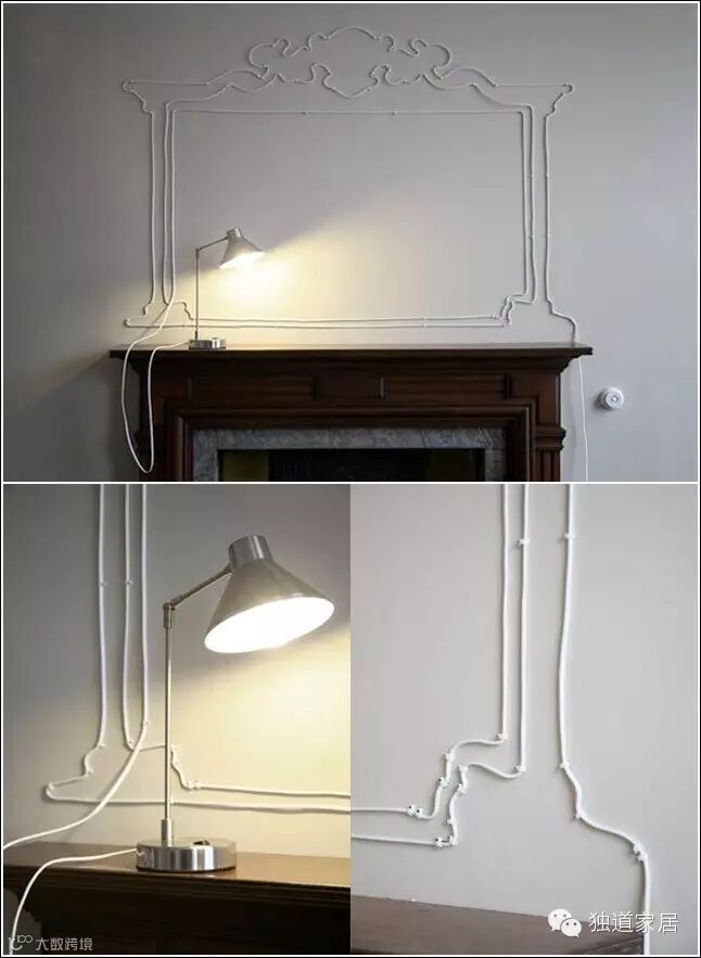 这时候,有人就会劝你开动艺术细胞,把墙上的线折腾成这样: