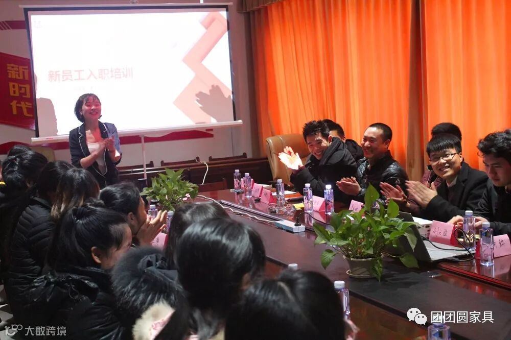 电商部经理龚鑫在培训会上分享了自己在公司的发展历程,从之前一个普通文员岗位做起,一步一步晋升到经理职位的过程。龚经理幽默风趣的演讲获得了新同事们的阵阵掌声。