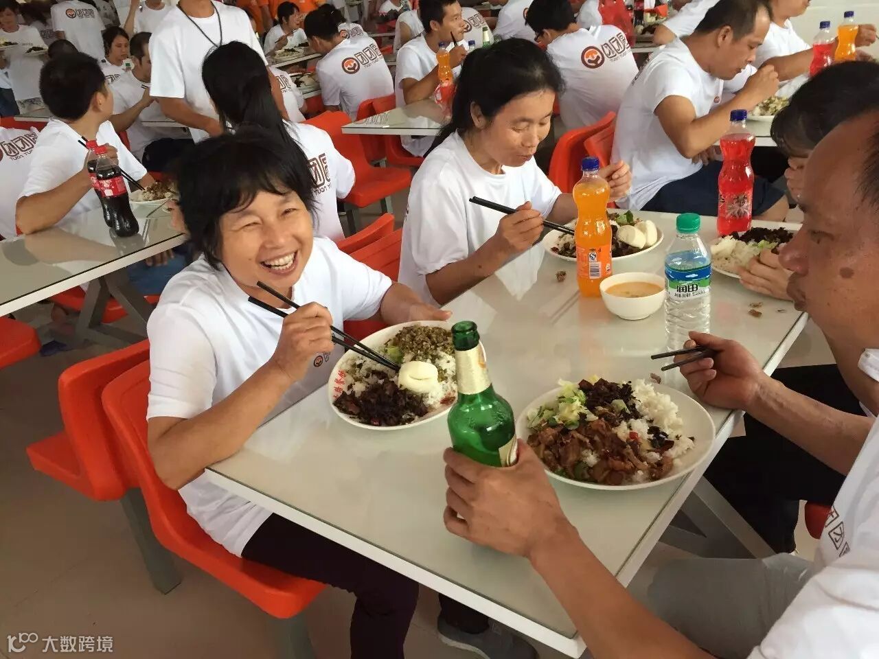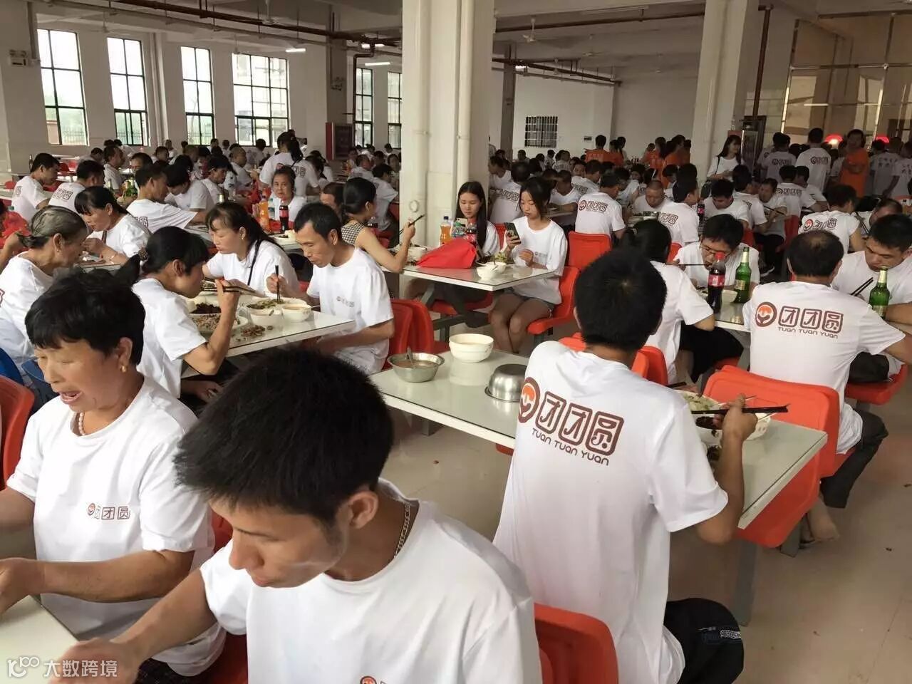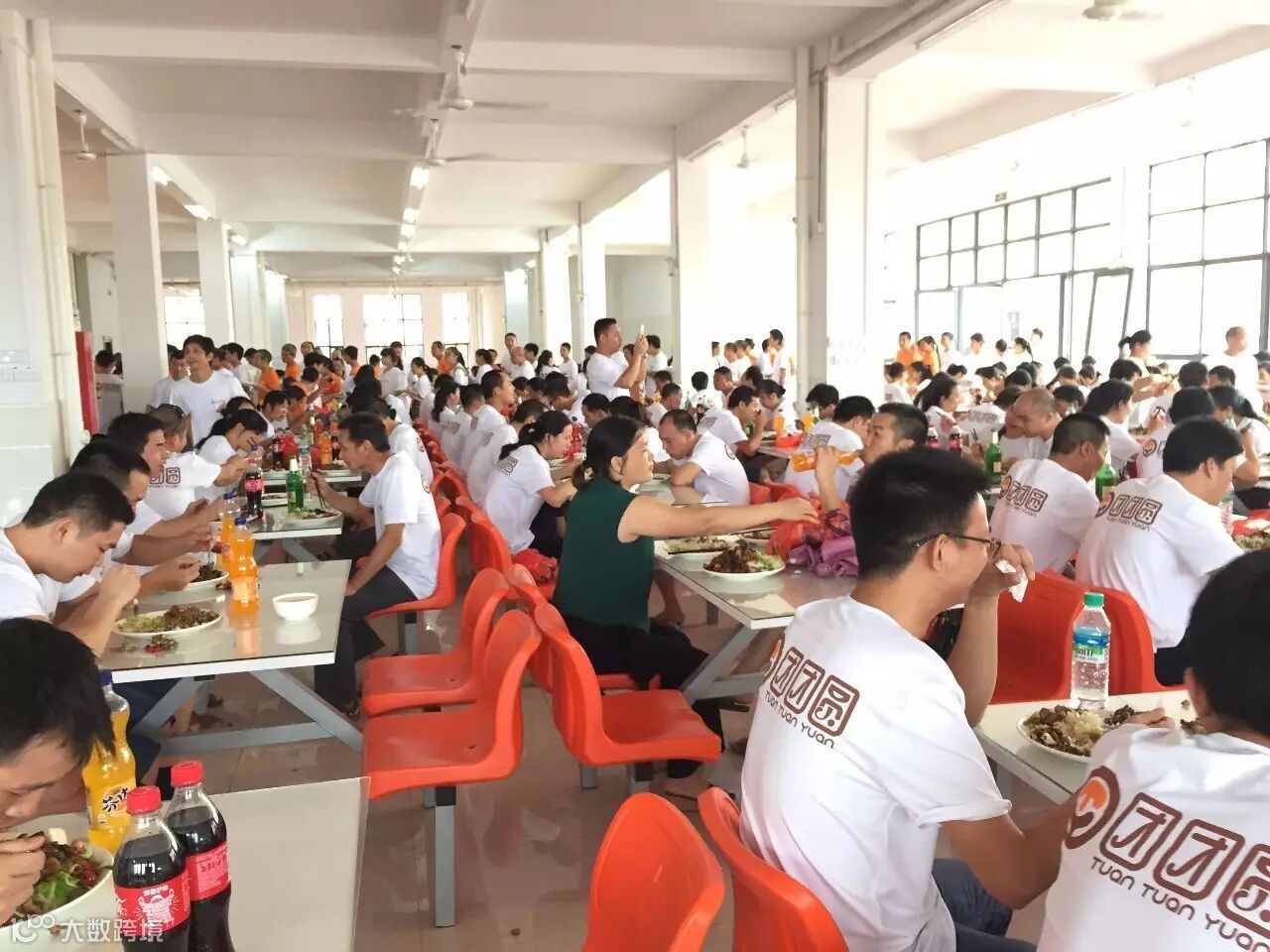 会后,全体员工到厂区内宽敞明亮的食堂享用丰盛的晚餐。