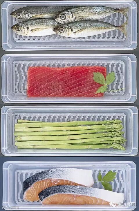 ▲日本进口沥水保鲜盒,用于保存鲜鱼、鱼肉和条形蔬菜。