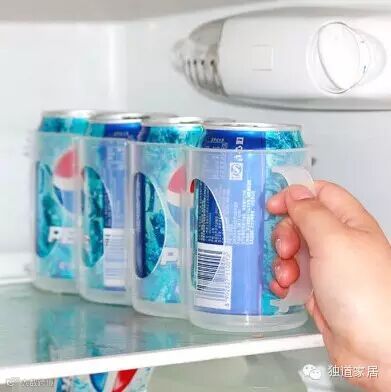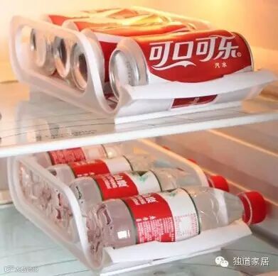 冰箱门内侧经常用来存放各种瓶瓶罐罐的调料和饮料。然而,冰箱门每一隔层的高度通常都比调料罐高很多,这就产生了一个问题:平放一排吧,浪费纵向空间;摞起来放吧,又不稳定,容易倒……