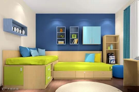 对于空间紧凑的小户型家庭来说,多个宝宝的房间,床位是必须首先解决的问题。条件允许的话,尽量分开睡。还有平等设计是必须的。其次,上下铺的“高挑型”儿童床也是一个不错的选择。这样能将两个人的空间距离拉近,又能很好地进行沟通。