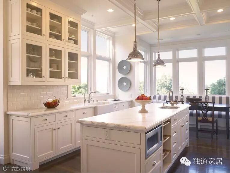 同样,岛式厨房也有些“华而不实”,因为需要极大的空间支撑。在封闭式厨房中,选择岛式的“性价比”并不高,有那个面积不如加宽台面来得实在。若设置在开放式厨房中,弊端也在于油烟问题。
