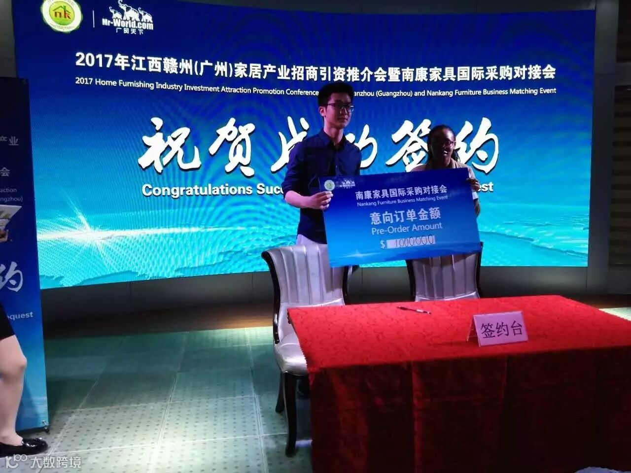 2017年4月26日,江西赣州(广州)家居产业招商引资推介会暨南康家具国际采购对接会在广州举行,本次对接会邀请了诸多外商参加,共有800多家外国企业报名,南康区甄选出306家全球采购商进行对接。