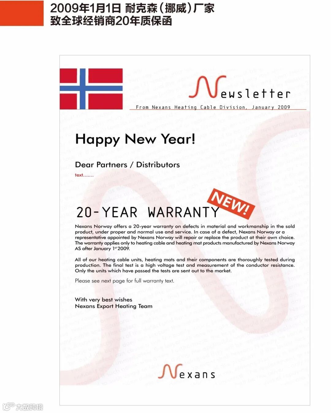 “Nexans 耐克森作为全球最早的发热电缆厂家
