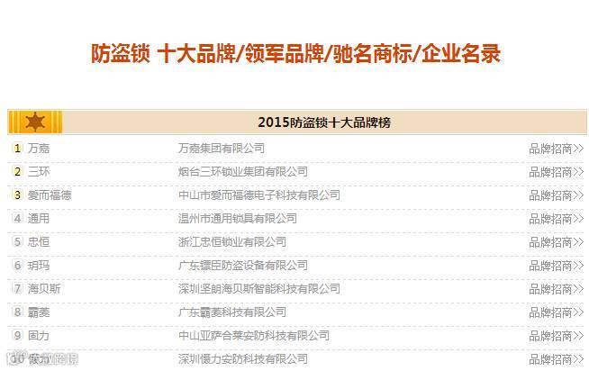 中国防盗锁十大品牌