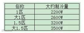也就是空调的制冷能力,标准单位是W。市场上经常用的俗称单位是匹,这是一个参照国外习惯的单位,大概的换算关系见下表。