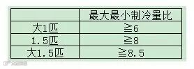 最后要看最小制冷量的能耗比,也就是最小制冷量比最小制冷功率。这个代表了空调最小制冷量时的工作效率。这算是一个节能指标,小编个人推荐的最小制冷量能耗比为大于4。