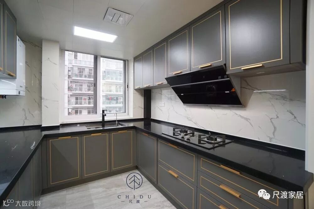 定制橱柜:符合人体工程学在厨房地面装修前就可开始设计,各种管线、插座预留位置,空间布局合理。