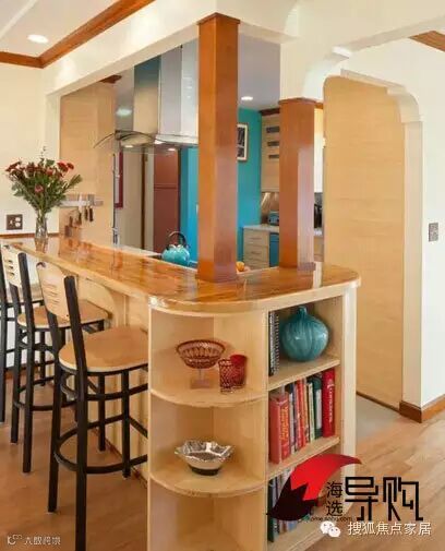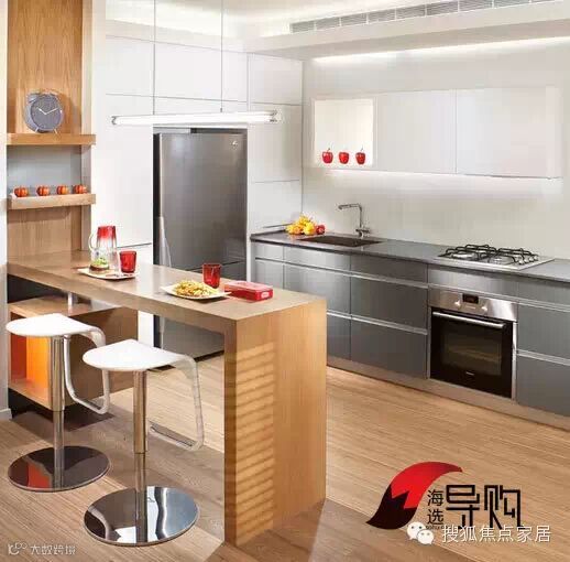 如果是开放式厨房,可以将吧台融入厨房的一角