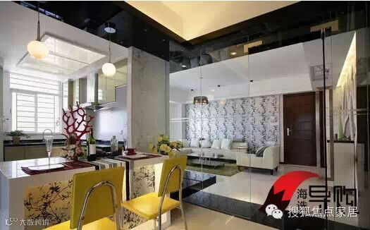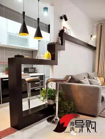 吧台,原本是属于大户型的设计,如今却越来越多地融入到了现代家居的设计中,成为家里一个情趣满满的所在。对于很多小夫妻来说,共同回家吃饭的机会可能不多,或是客厅的使用面积不够大。因此,免去餐厅,直接设计一个小小的吧台或是餐台是很多80后的选择。