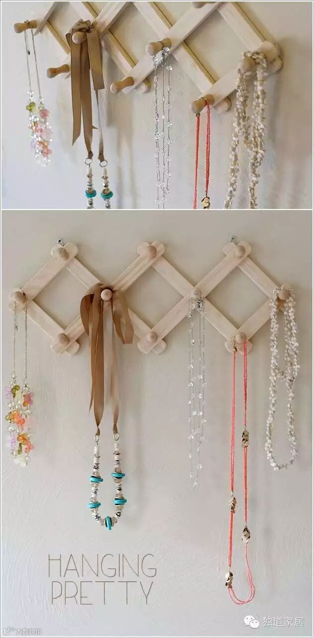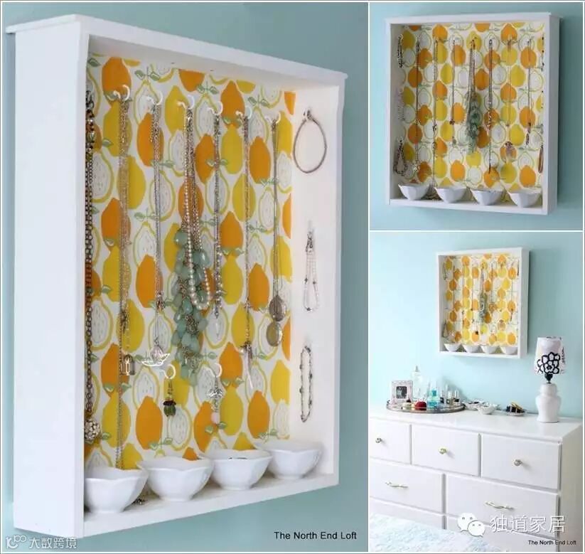 ⑧ 还有人直接把旧家具的抽屉掏出来、立起来、挂起来,就成了首饰收纳柜。。。小编也是醉了: