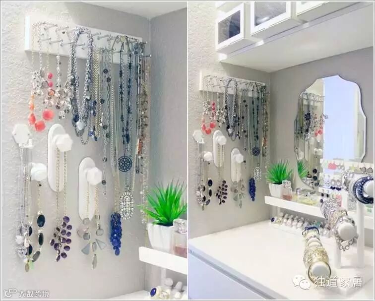 之前我们介绍过衣柜布局、男生衣物收纳、家居省钱收纳(微信关注公众号“独道家居”,回复数字 203、204、205 查看详情),今天就专门来给姑娘们总结几个首饰收纳妙招。