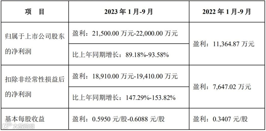 艾比森预计2023年前三季度盈利2.15亿元-2.20亿元,比上年同期增长89.18%-93.58%。2023年前三季度公司实现签单约34.84亿元,同比增长约42.44%,签单金额的高速增长带动公司营业收入的高速增长;公司2023年前三季度实现营业收入约25.37亿元,同比增长约42.53%。