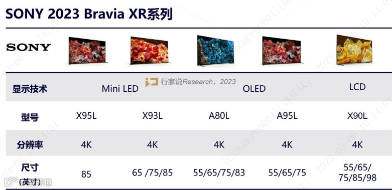 3月2日,索尼推出了2023 Bravia XR系列——包括X95L、X93L、X90L、A95L和 A80L,其中应用了全阵列 LED、OLED 和 Mini LED 技术。