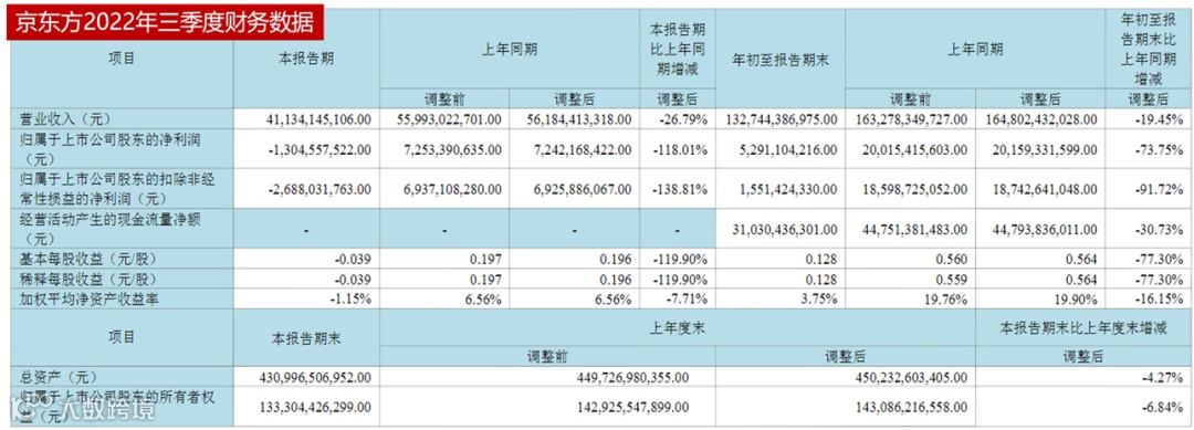 10月30日,发布其第三季度业绩报告,实现营收411.3亿元,同比下降26.8%;归母净利润亏损13亿元,同比降低118%;2022年前三季度,实现营收1327.4亿元,同比下降19.5%;归母净利润52.9亿元,同比下降 73.8%;